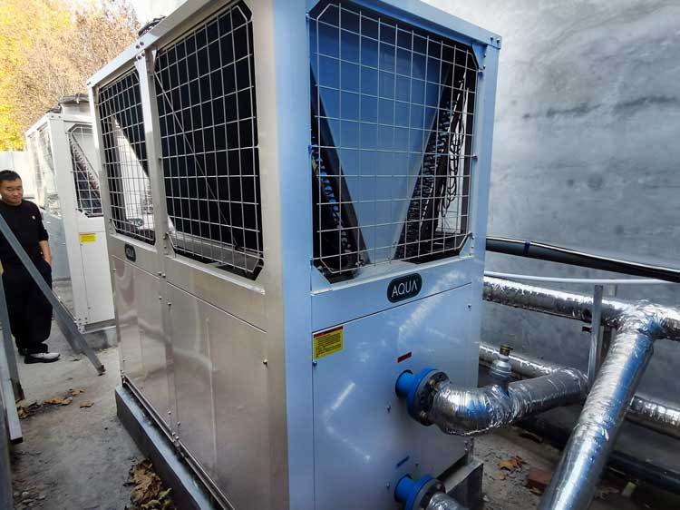 负责水温调控的“核心角色”是空气源泳池恒温热泵。北方秋冬季节气温常低至0℃以下,传统加热设备要么能耗飙升,要么制热效率骤降,而AQUA爱克这款热泵凭借宽温域运行能力,即使在寒冷天气也能保持高效制热,COP值(能效比)超4.0,相比电加热节省50%以上能耗,可设定并维持泳池水温在理想范围(如26℃~28℃),既满足了学生晨练时的舒适水温需求,又为学校降低了运营成本。