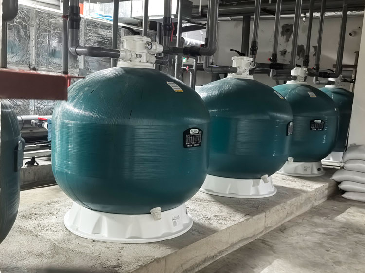 与泳池水泵协同应用的过滤砂缸,以石英砂分层形成多层过滤屏障。工作时,水流穿透砂层,悬浮物被截留于滤料表面及孔隙中,可有效拦截5-10微米的杂质,包括毛发、皮屑、藻类及微小颗粒,进一步提升水质清澈度。在维护便利性上,设备反冲洗过程高效便捷,仅需2~3分钟即可完成清洁,大幅减少人力与时间成本。