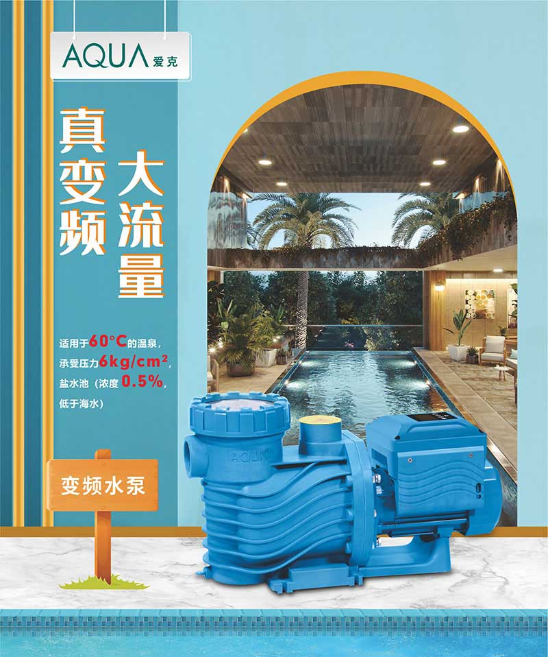 针对不同场景对泳池水泵的差异化需求,AQUA爱克打造了覆盖变频、大流量、通用循环等全品类水泵矩阵,从私家泳池、商业泳池到温泉泡池、大型水上乐园,均能提供适配方案。