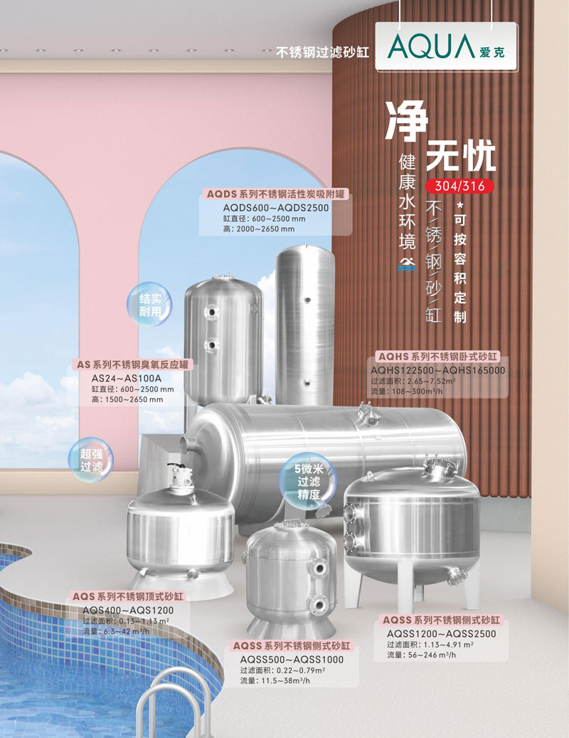 在此背景下,泳池设备领域资深品牌AQUA爱克,凭借近30年技术积累与全谱系产品布局,在砂缸过滤器赛道建立起差异化优势。其覆盖家用、商用、特种场景的过滤体系,已成为高端泳池设备品牌突围的典型样本。
